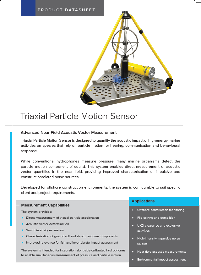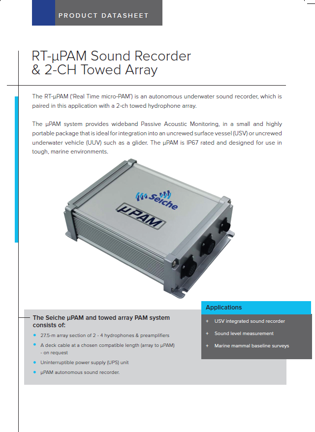 Wind Europe 2026 Thanks for visiting our stand at Wind Europe – feel free to download any brochures or datasheets you need. For any further information, please contact us on 01409 404050 or email enquiries@seiche.com Technology Solutions & Environmental Services Brochure Triaxal Particle Motion Sensor Datasheet RT-μPAM Sound Recorder& 2-CH Towed Array Real-Time Sound MeasurementBuoy System Related ServicesRelated Products
